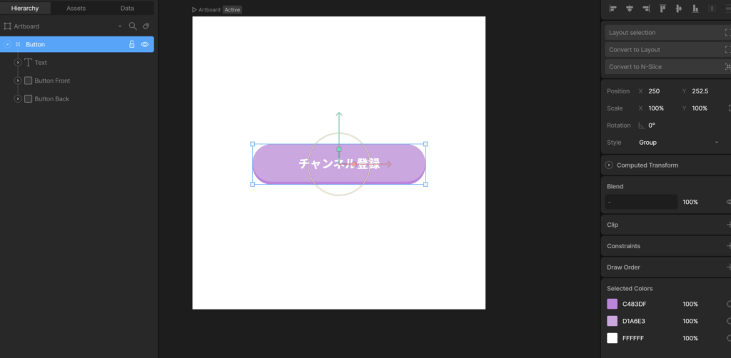 UIはFigmaと似たような感じで、直感的にボタンを作成することができました。