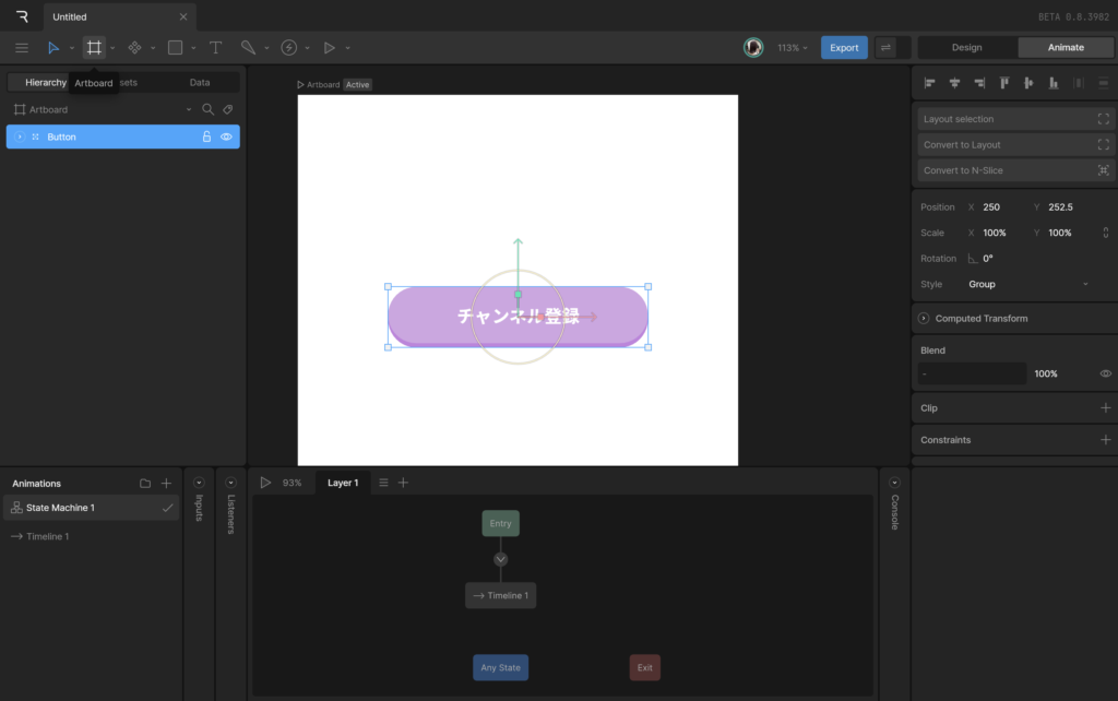 今回は初歩の初歩として、自分が理解するために作ってみました!Figmaのように直感的で使えますし、AEを使ったことがある方ならある程度わかりやすいUIなのかなと思いました