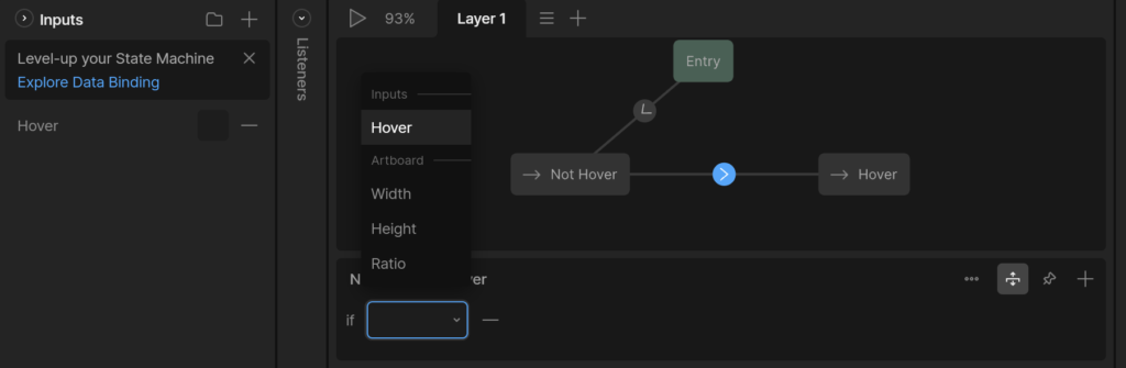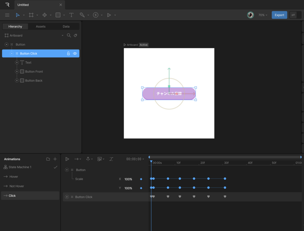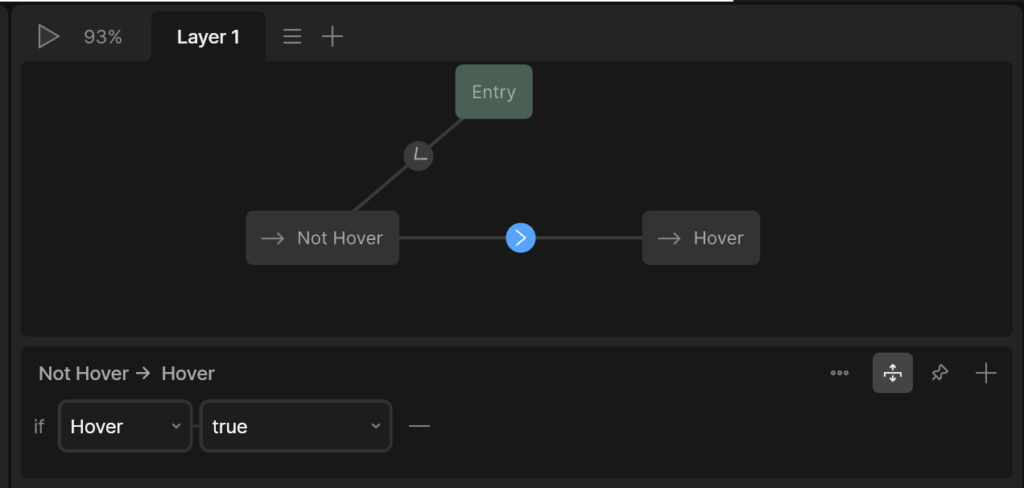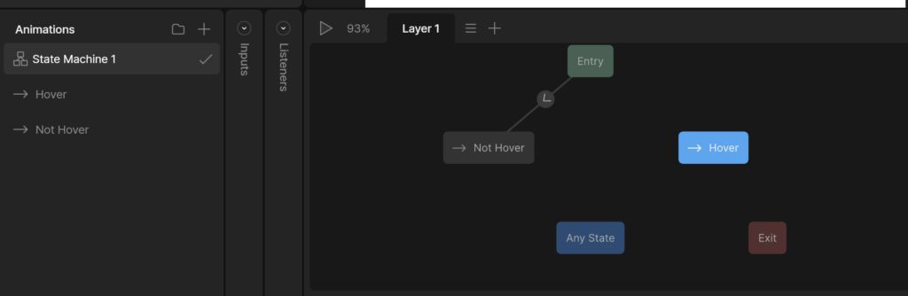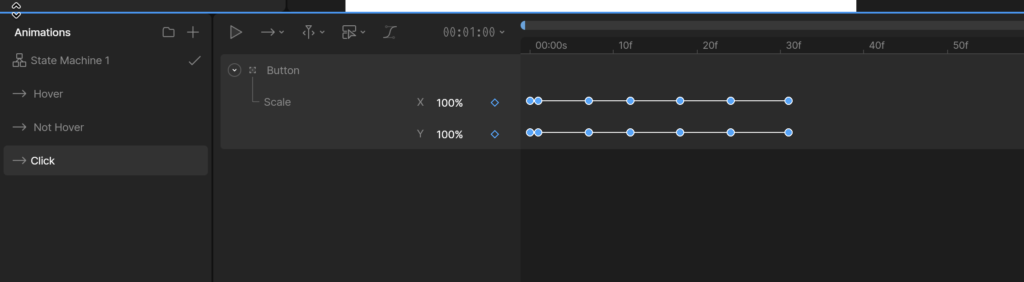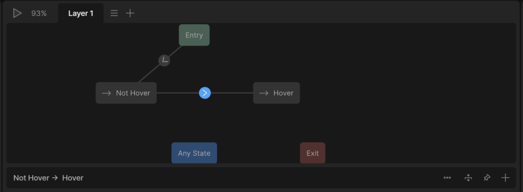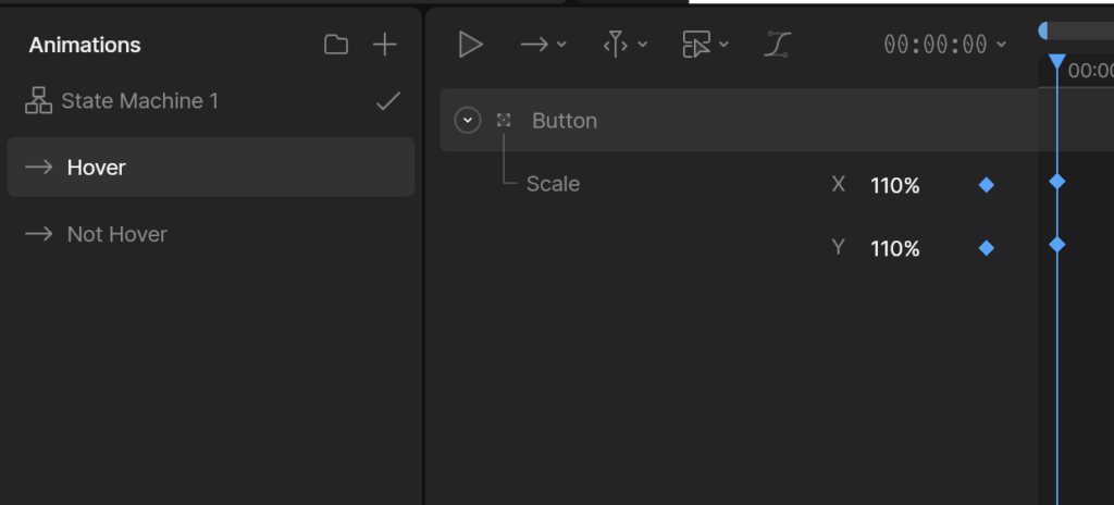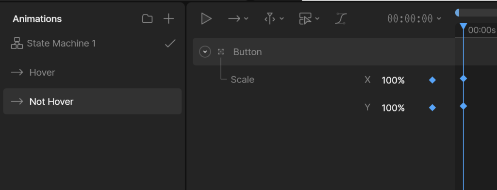 AfterEffectsのようにScale値をいじってキーフレームを打つ方式のようですね、「Not Hover」の状態と「Hover」の状態を作成しておきます。AEで言うコンポジションを2つ作った状態?