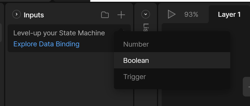 変化させたいインタラクションを選択した状態で「Inputs」タブを選択します。